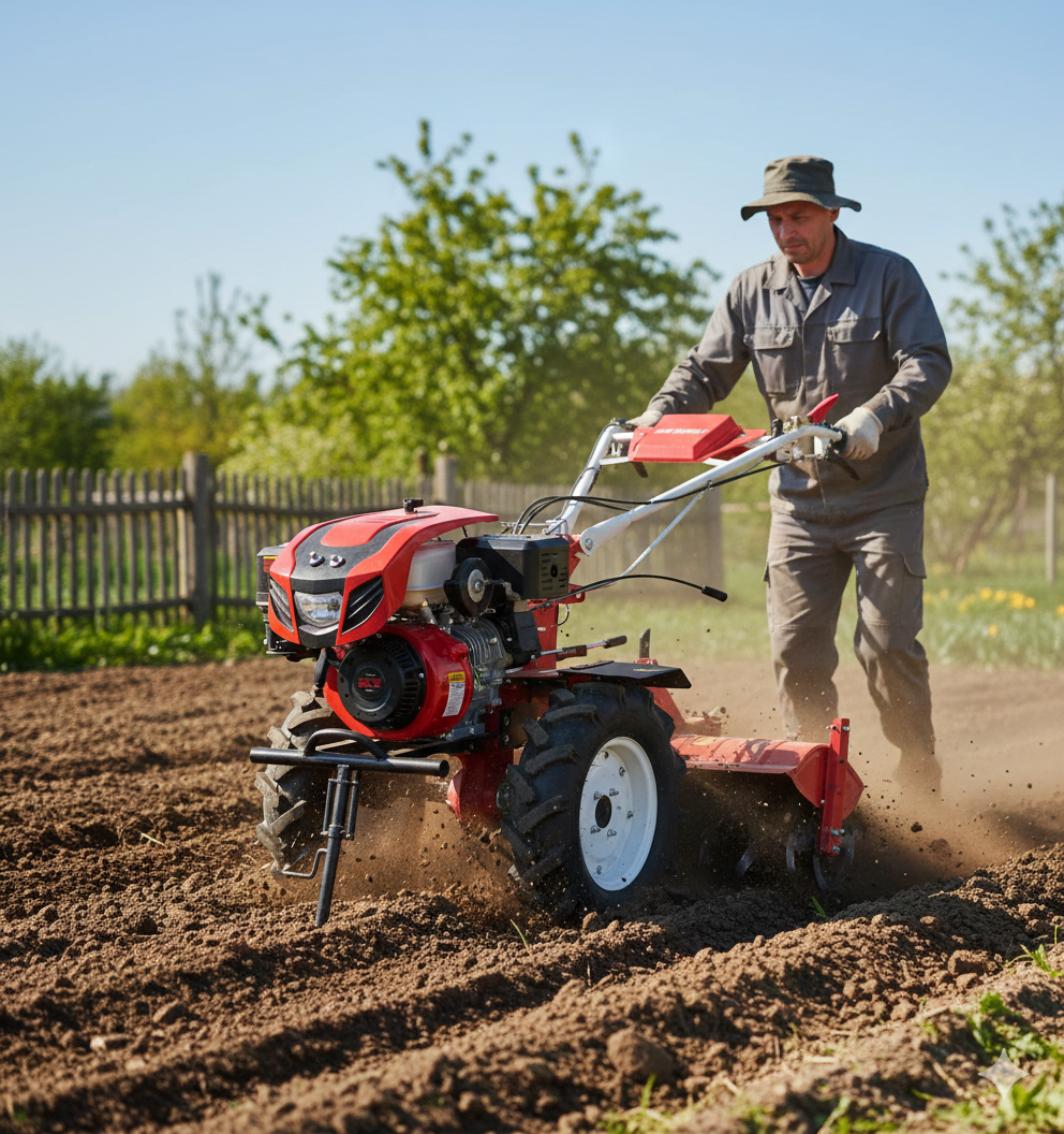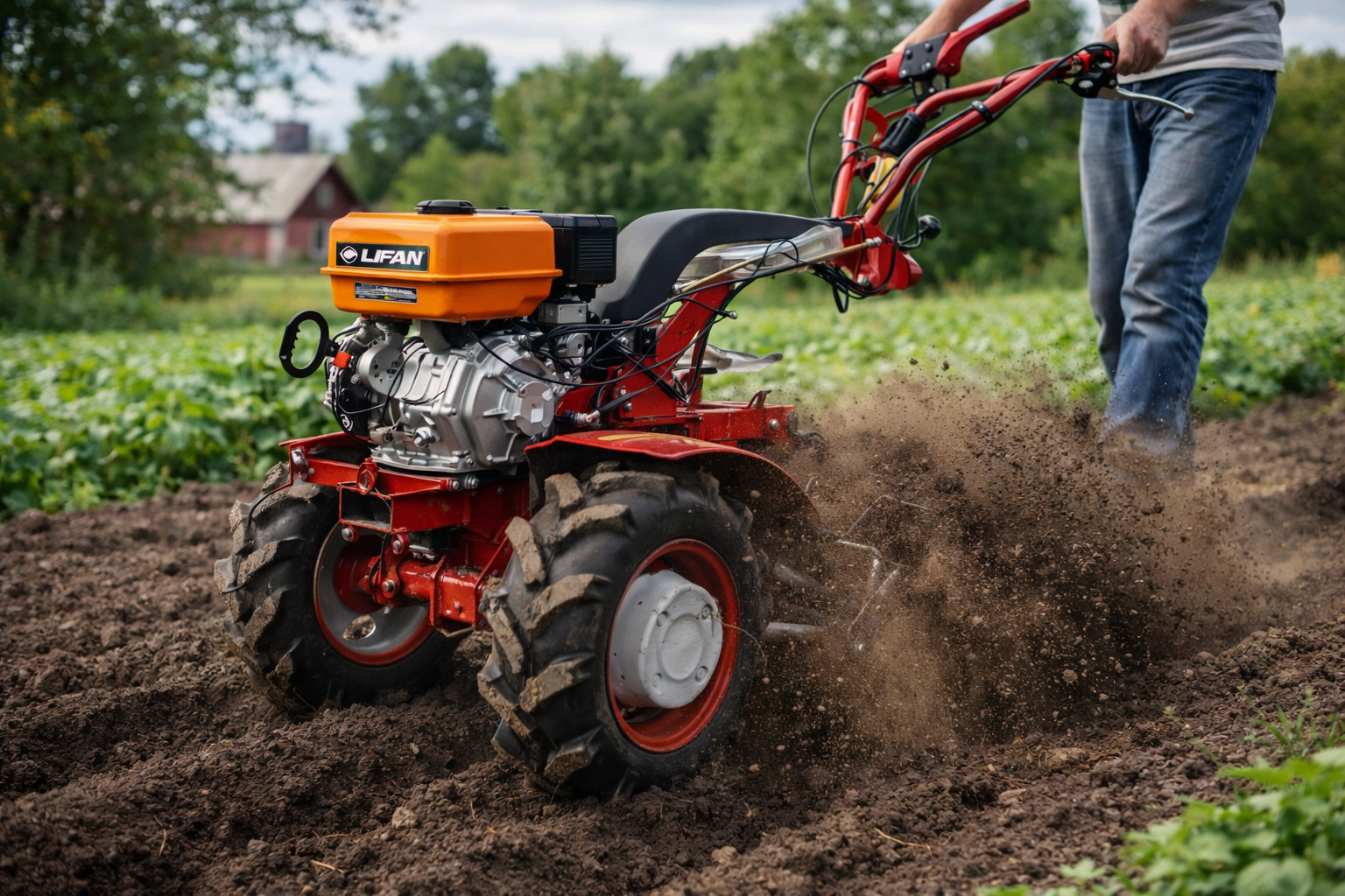 Мотоблок мощный, тянет хорошо, землю берёт уверенно. Использую для вспашки и картофеля — результат отличный. Видно, что техника надёжная и рассчитана на работу, а не для красоты.